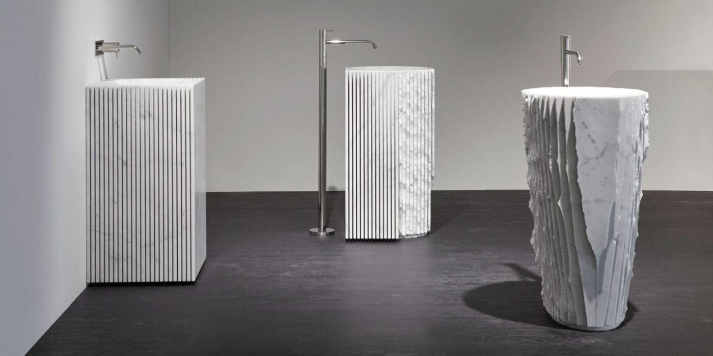Najstarsza na świecie materia, jaką jest marmur, spotyka się tu z nowoczesną technologią. Umywalka Controverso trafia do użytkownika w postaci pionowo pofrezowanej diamentową tarczą solidnych rozmiarów bryły geometrycznej, o regularnej, wręcz idealnej formie. Jednak wciąż jako przedmiot niedokończony, który oczekuje na nadanie mu ostatecznego kształtu. Po usunięciu dłutem warstwy ponacinanych wcześniej „płatów” marmuru wyłania się jej kształt, który jest zależny wyłącznie od naszej fantazji i pomysłowości. Własnoręcznie możemy umywalkę zdekonstruować mniej lub bardziej. Mamy szansę wpłynąć na jej wygląd końcowy. Sami stajemy się więc tu projektantem – artystą i twórcą, a wyrzeźbiona przez nas umywalka ubędzie niepowtarzalnym dziełem sztuki, które zrobi wrażenie w każdej łazience. Paolo Ulian zaprojektował również 2 inne piękne i równie kontrowersyjne umywalki: Introverso i Pixel.