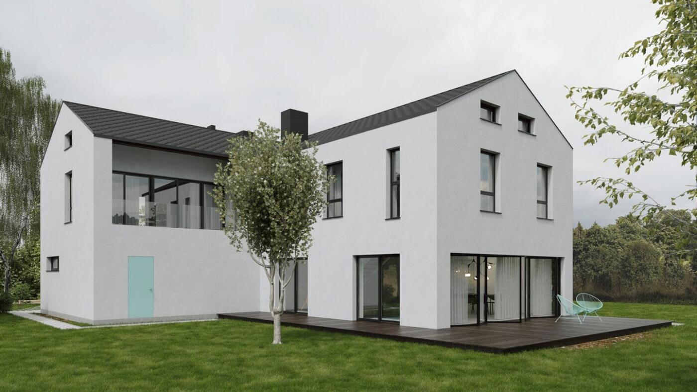 Nowoczesny dom dla nowoczesnej rodziny to projekt biura Marmur Studio. Dom został wyposażony w składane okna na parterze i na piętrze, co pozwala połączyć wnętrze z ogrodem na całej rozpiętości. Budynek ma kształt „L”, jest kompaktowy i przygotowany na zastosowanie systemów odzysku energii. Minimalizm w wyrazie architektonicznym podkreśla jego dostojność.